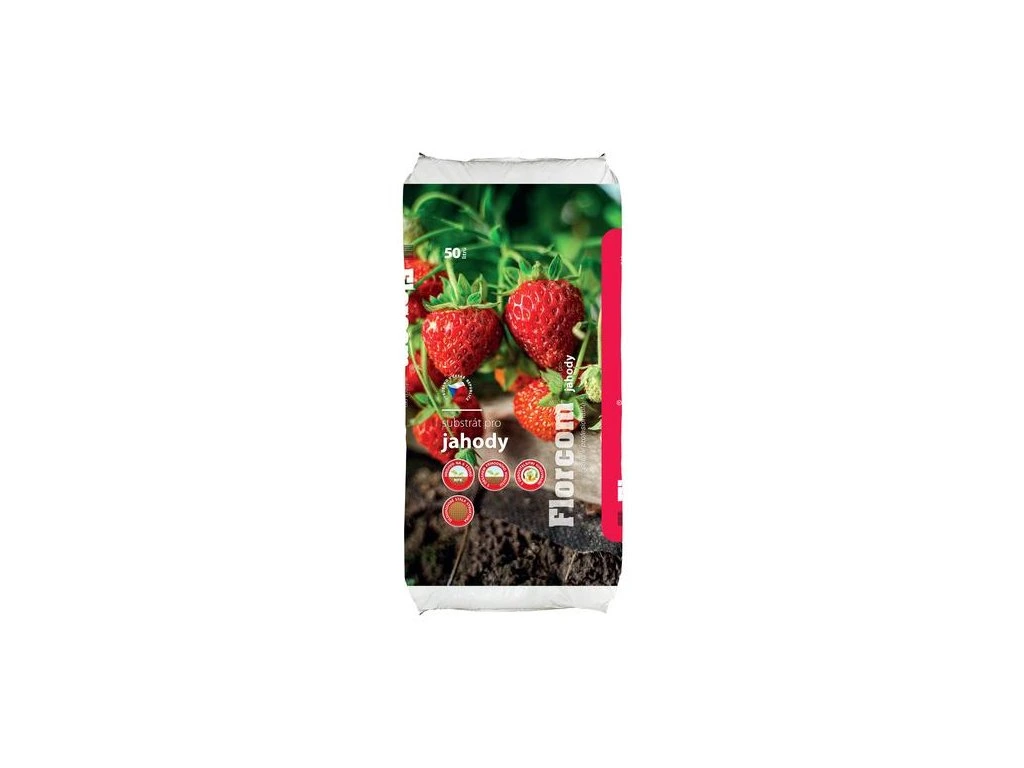 Florcom substrát pre jahody je špeciálny produkt určený na pestovanie jahôd a iného drobného ovocia. Je zložený zo zmesi svetlej a tmavej rašeliny a vyzretého kompostu. Substrát obsahuje hnojivo na 4-6 týždňov a vďaka svojej stálej štruktúre zaisťuje optimálnu vodnú a vzdušnú kapacitu pre koreňový systém.